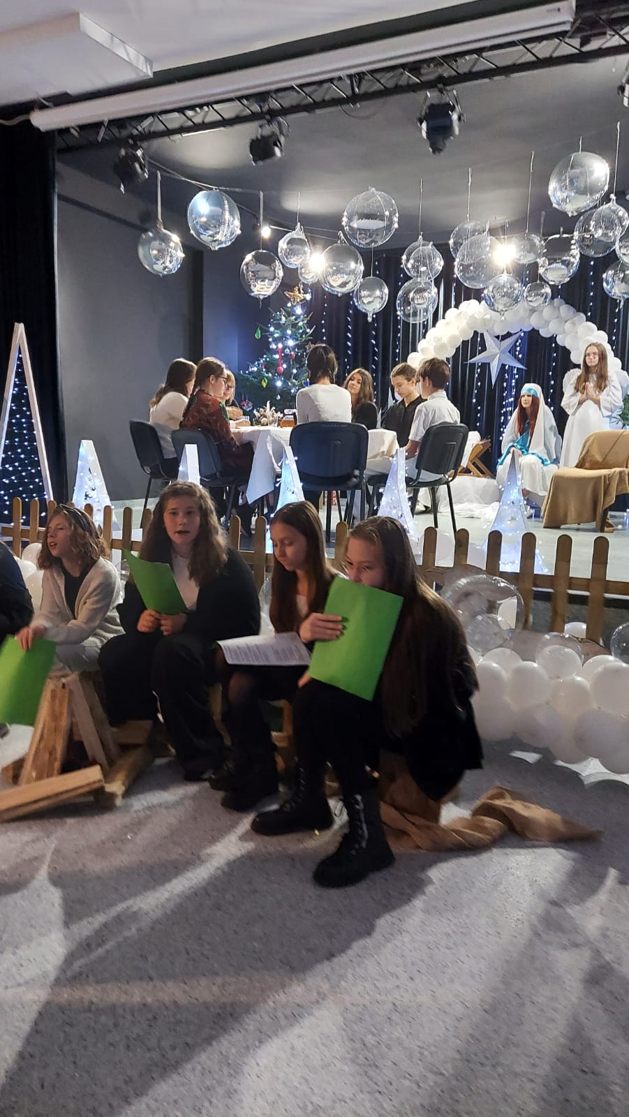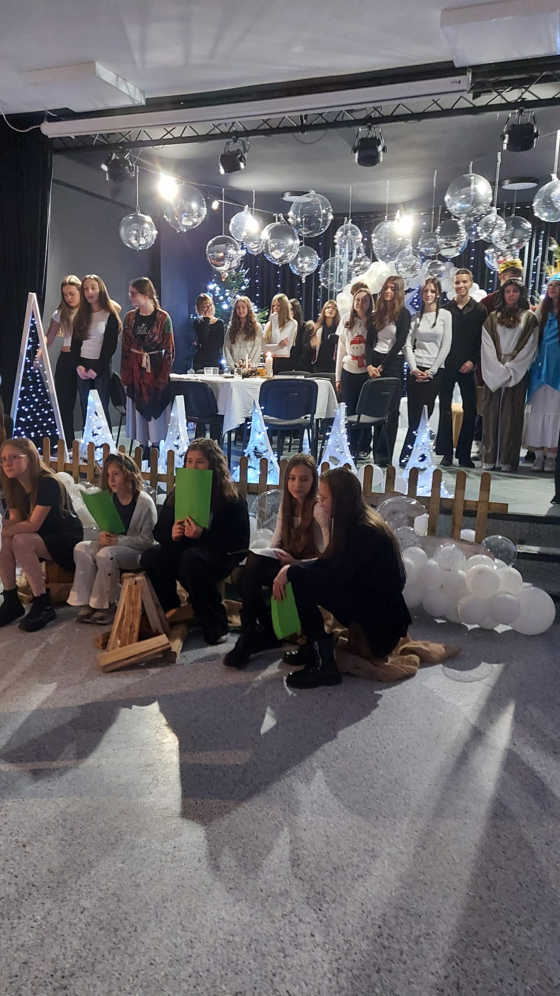 Młodzi aktorzy z dużym zaangażowaniem odegrali swoje role, a świąteczna dekoracja i nastrojowa muzyka wprowadziły widzów w wyjątkowy, bożonarodzeniowy klimat. Przedstawienie spotkało się z ciepłym przyjęciem publiczności i zostało nagrodzone gromkimi brawami.