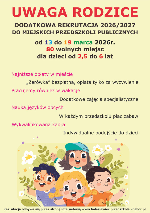 Dodatkowa rekrutacja do miejskich przedszkoli na rok 2026/2027