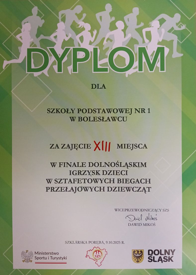 Gratulacje dla wszystkich zawodników i zawodniczek SP 1 w Bolesławcu, ich nauczycieli WF oraz opiekunów! Wasza postawa sportowa i duch rywalizacji są powodem do dumy!