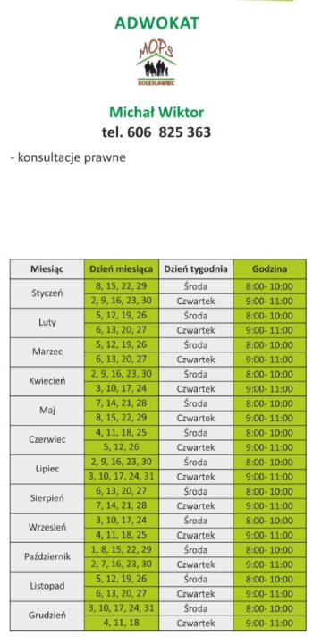 Harmonogram dyżurów specjalistów na poniższych zdjęciach.