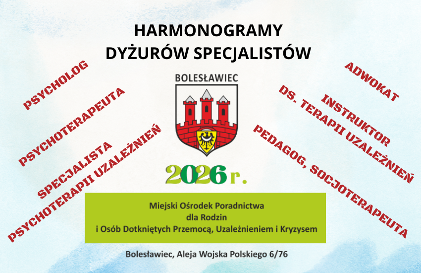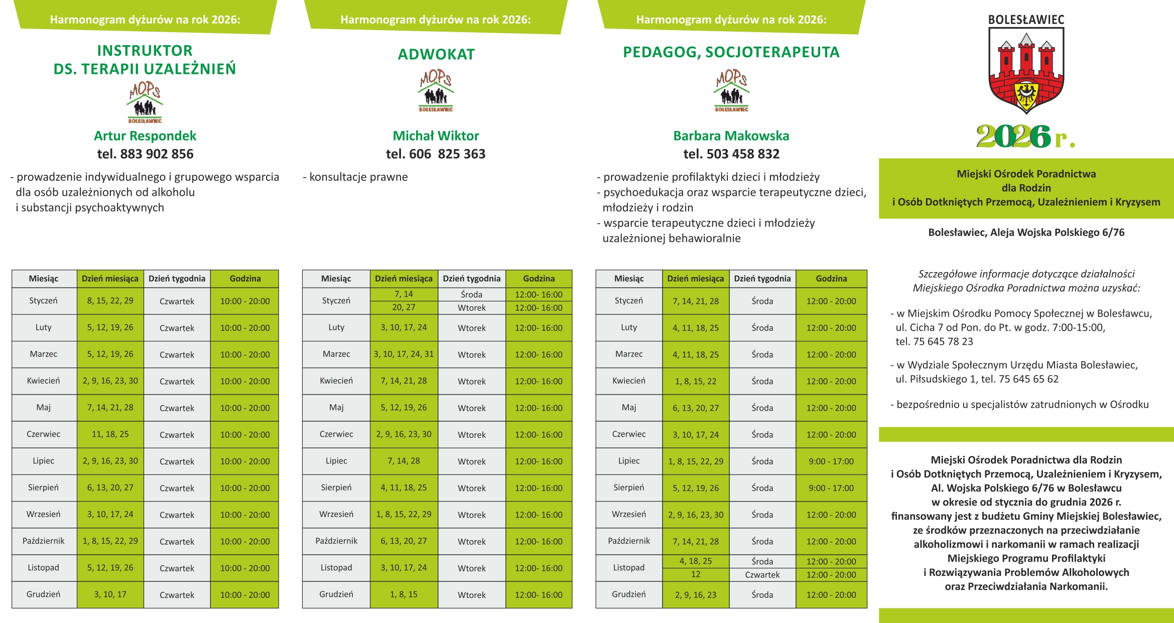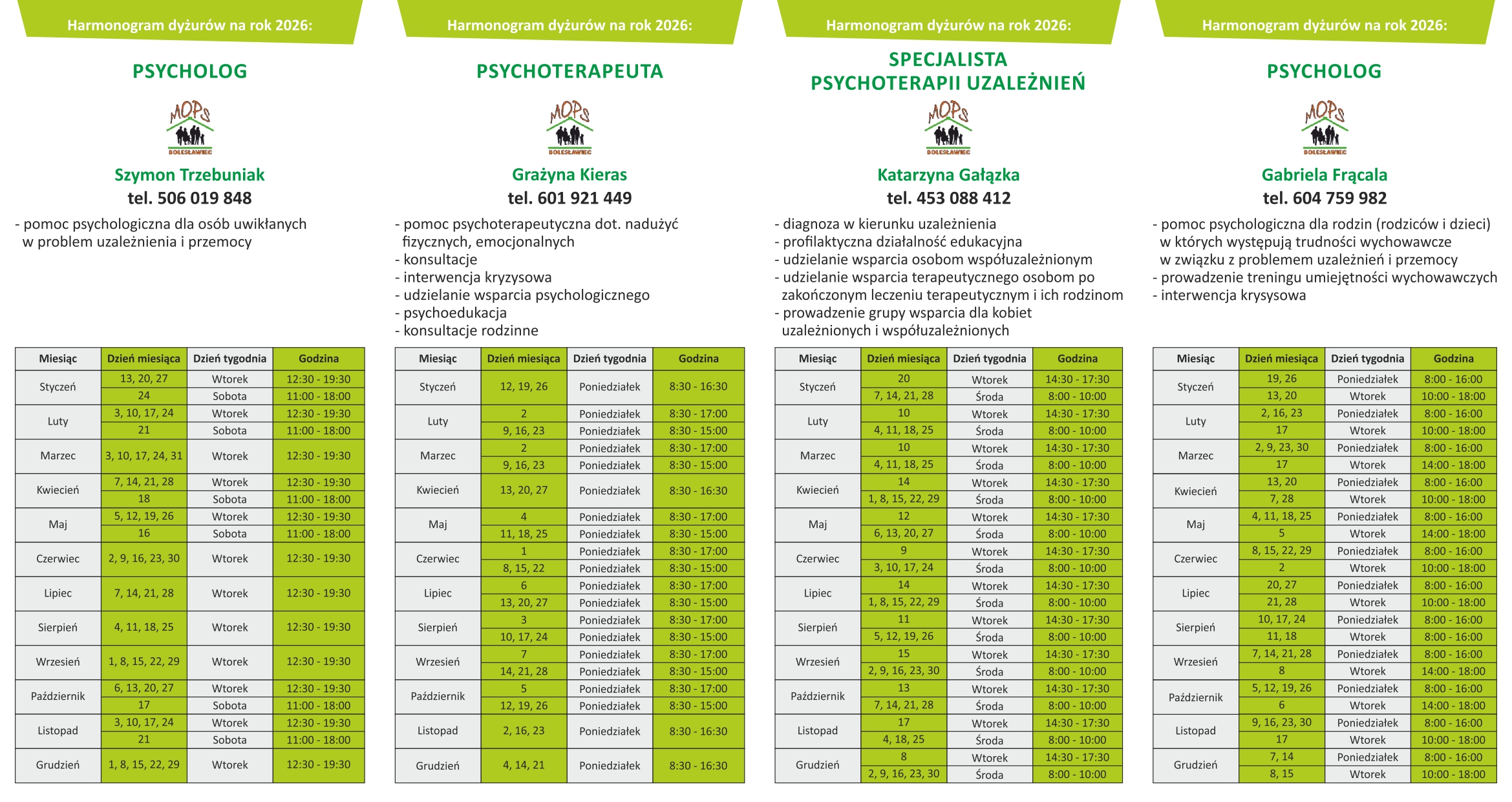 Harmonogram dyżurów specjalistów na poniższych zdjęciach.