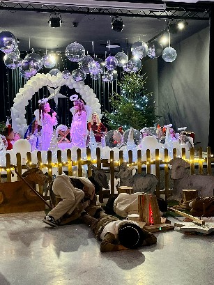 W dniu 16 grudnia 2025 roku w radosnym widowisku o Bożym Narodzeniu uczestniczyli uczniowie klas I - III wraz z nauczycielami. Jasełka podbiły serca najmłodszych widzów, którzy nagrodzili występ gromkimi brawami.