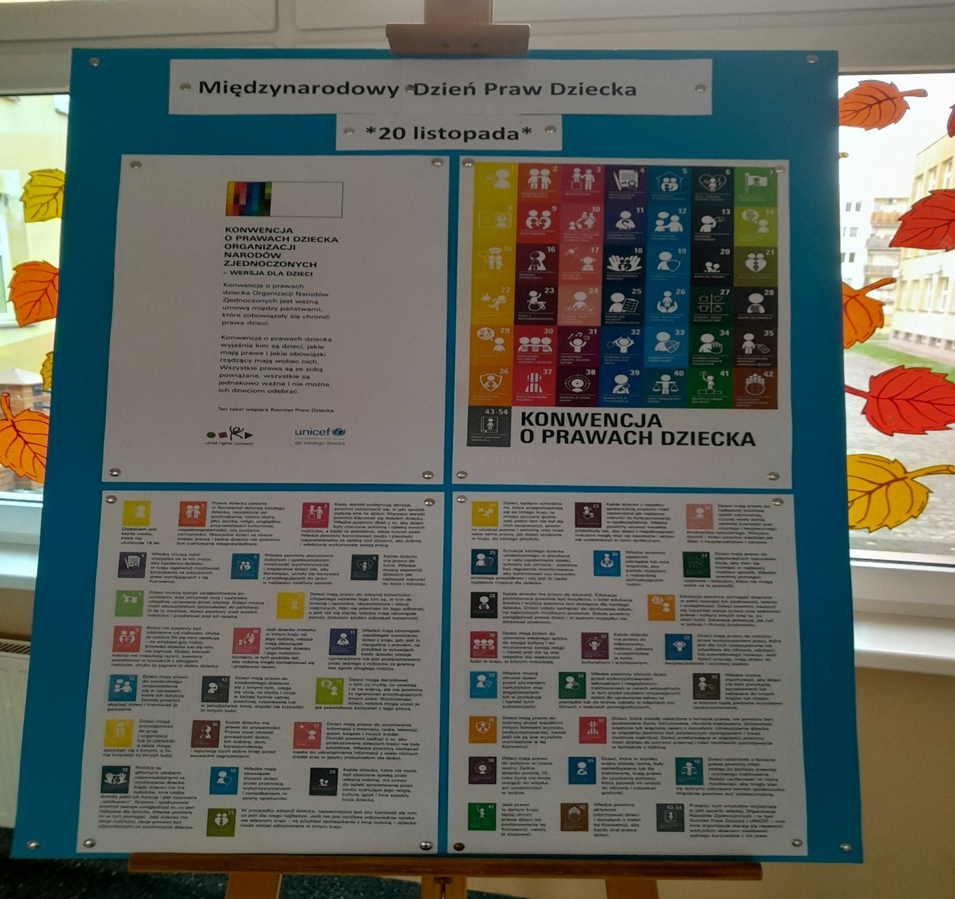 Dnia 20 listopada 2025r. w Szkole Podstawowej nr 1 w Bolesławcu obchodziliśmy Międzynarodowy Dzień Praw Dziecka. Z tej okazji w szkole na korytarzach szkolnych pojawiły się tablice informacyjne na temat praw dziecka. Uczniowie naszej szkoły na zajęciach lekcyjnych zostali zapoznani z najważniejszym dokumentem dotyczącym praw dziecka, czyli Konwencją o prawach dziecka. Każdemu dziecku na świecie przysługują takie same prawa - prawa dziecka. Każde dziecko powinno znać swoje prawa i je rozumieć. Uczniowie na zajęciach prowadzili dyskusję, wykonywali prace plastyczne, pisali krótkie wypowiedzi pisemne na temat praw dziecka. Prace uczniów zostały wykorzystane do dekoracji klas. Zajęcia prowadzone były w oparciu o scenariusze UNICEF.