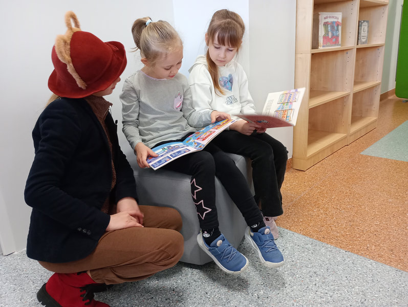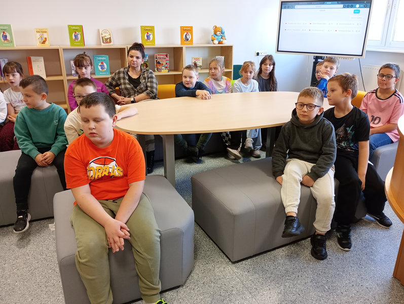 Z okazji Dnia Pluszowego Misia pierwszo- i drugoklasiści zostali zaproszeni do biblioteki.
