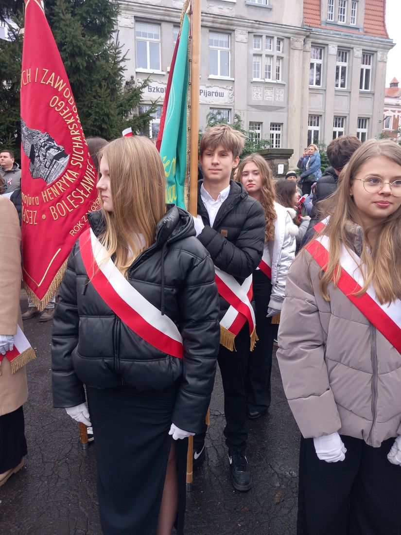 W dniu 11 listopada 2025r. Poczet Sztandarowy SP nr 1 im. Janusza Kusocińskiego w składzie: Bartosz Stokowiec, Wiktor Podrez, Milena Ormaniec, Alicja Zadora, Oliwia Reszka i Julia Lubieniecka, reprezentował naszą społeczność na powiatowej uroczystości patriotycznej z okazji 107 rocznicy ODDZYSKANIA PRZEZ POLSKĘ NIEPODLEGŁOŚCI.