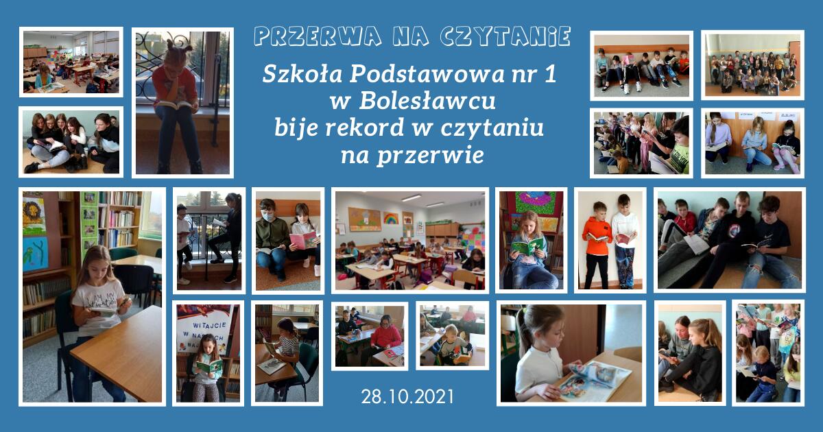 28 października Szkoła Podstawowa nr 1 w Bolesławcu wzięła udział w II międzynarodowej akcji bicia rekordu w liczbie osób czytających na przerwie,pt. "PRZERWA NA CZYTANIE – BICIE REKORDU W CZYTANIU NA PRZERWIE".