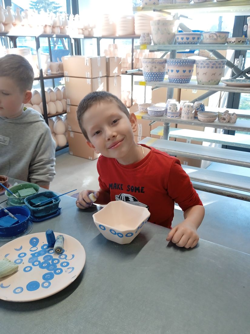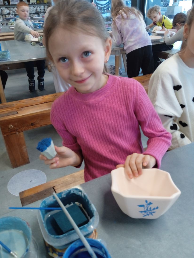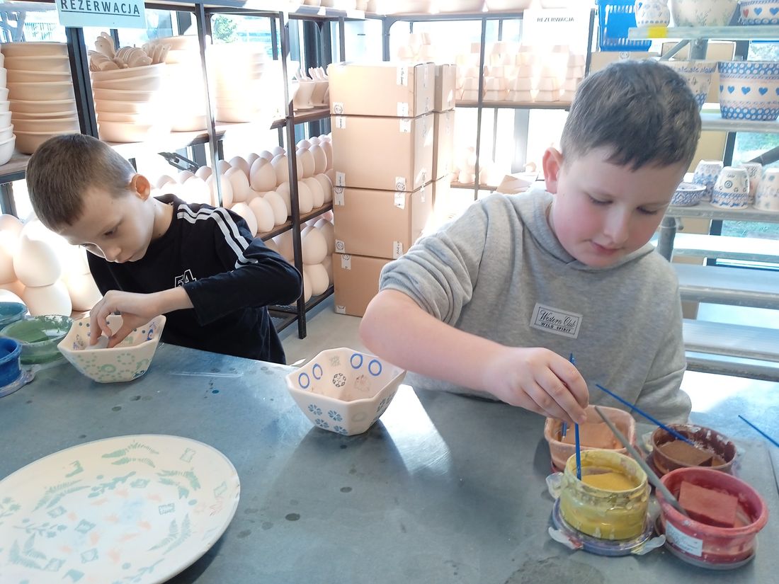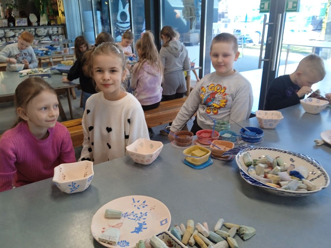 W dniu 6 marca 2026 roku uczniowie klasy 2a z okazji Dnia Dziewczynek wzięli udział w warsztatach ceramicznych, w Manufakturze. Dzieci poznały technikę stempelkową i z dużą kreatywnością ozdabiały własne naczynia. Zwiedziły również zakład, poznając tajniki produkcji i piękno ceramiki bolesławieckiej.