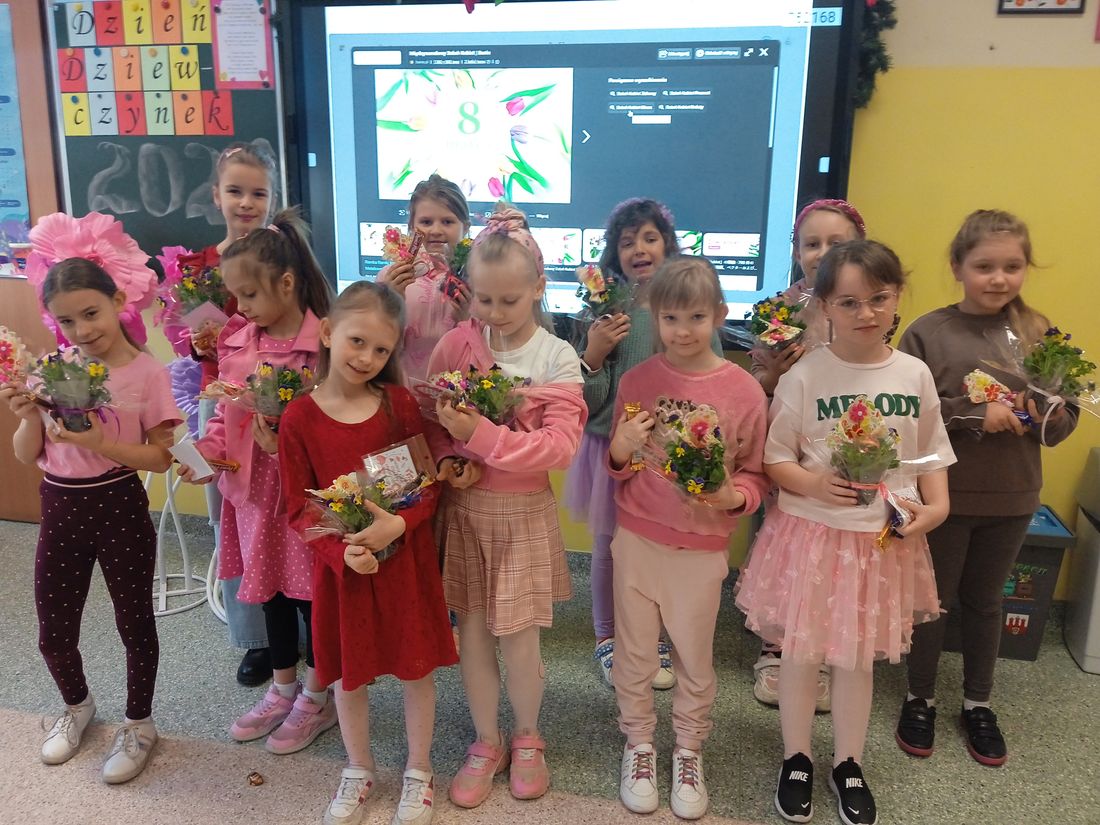 Druga część uroczystości odbyła się 9 marca. W tym wyjątkowym dniu nie zabrakło życzeń, niespodzianek oraz słodkiego poczęstunku. Każda dziewczynka otrzymała upominek przygotowany przez Rodziców. Chłopcy złożyli koleżankom życzenia oraz wręczyli kwiaty i drobne prezenty.